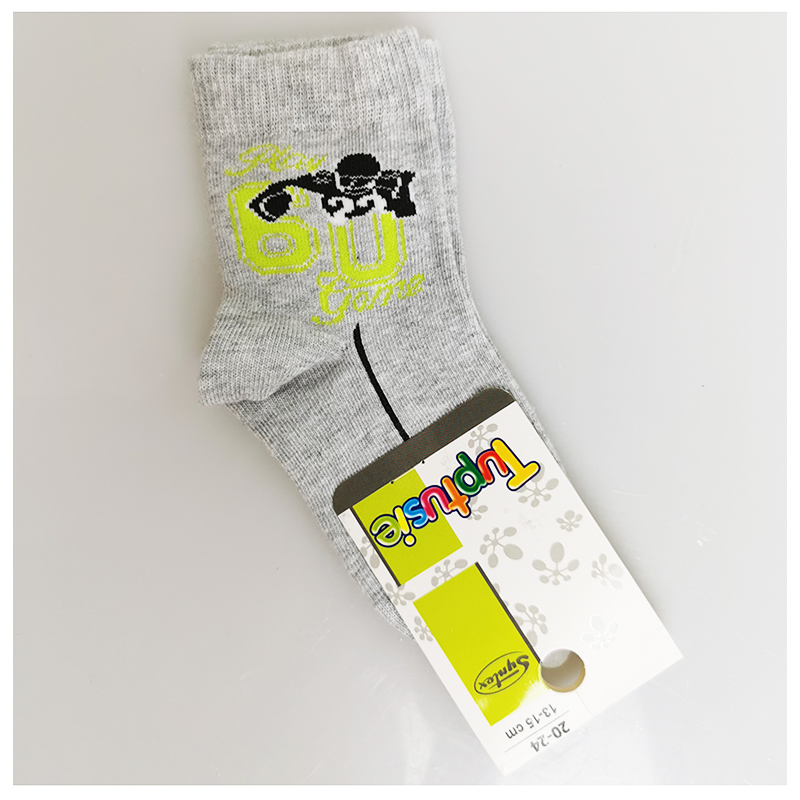 Detské bavlnené ponožky sú vyrobené z vysoko kvalitnej bavlnenej priadze. Sú veľmi príjemné na dotyk a pohodlné. Majú ploché švy s nesťahujúcim a protisklzovým lemom. Pevne držia a zároveň sa nezarezávajú do pokožky.