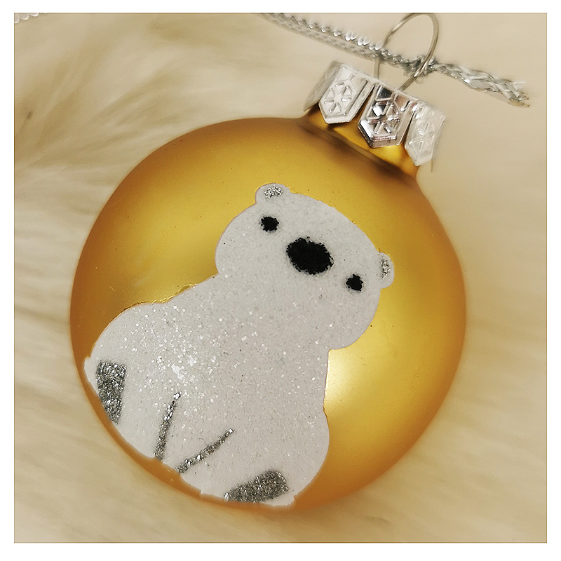 - Vianočná guľa žlta s polárnym medveďom