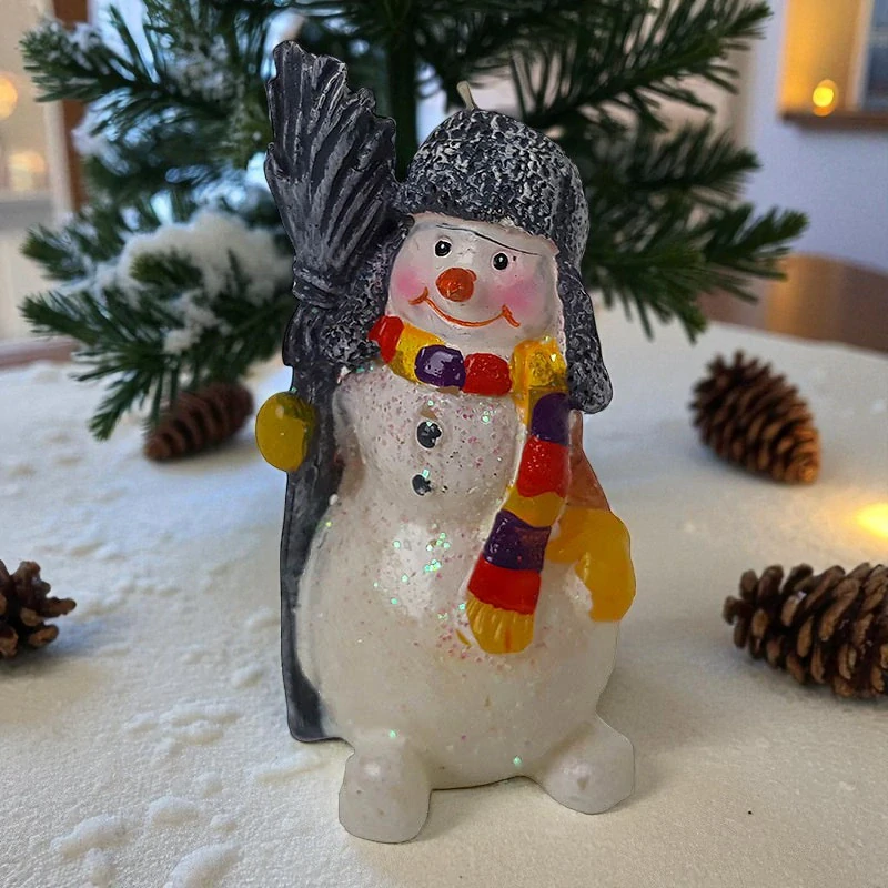 Táto vianočná sviečka v tvare snehuliaka prinesie do vášho domova tú pravú zimnú náladu. Veselý snehuliak so šálom v pestrých farbách, teplou čiapkou a metlou v ruke pôsobí hravo a priateľsky – ideálny doplnok pre každý sviatočný interiér.