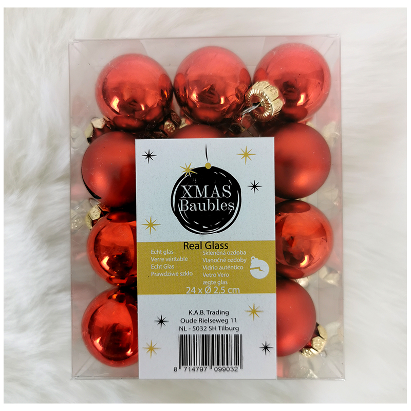 Vianočné gule na stromček s priemerom 2,5cm. Balenie obsahuje 24kusov.