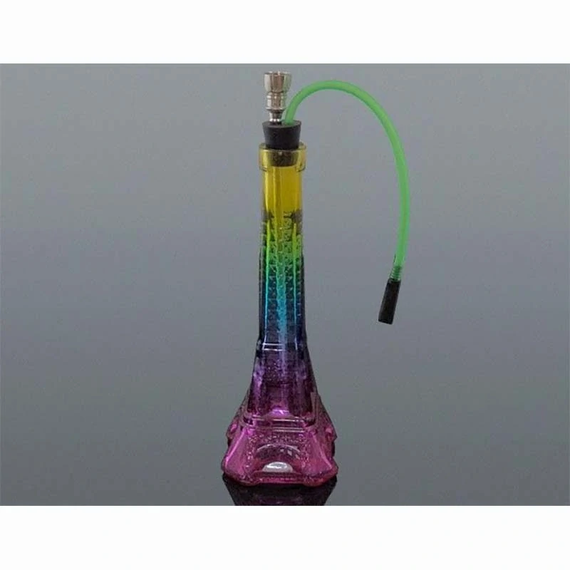 Zaujímavá vodná fajka SHISHA výšky 17cm vo viacfarebnom prevedení s motívom Eiffelovej veže. Má jednu pletenú hadičku s dĺžkou 35cm. Balenie obsahuje vázu, konštrukciu, korunku, kliešte na uhlíky, hadičky s náustkom, tesnenia.