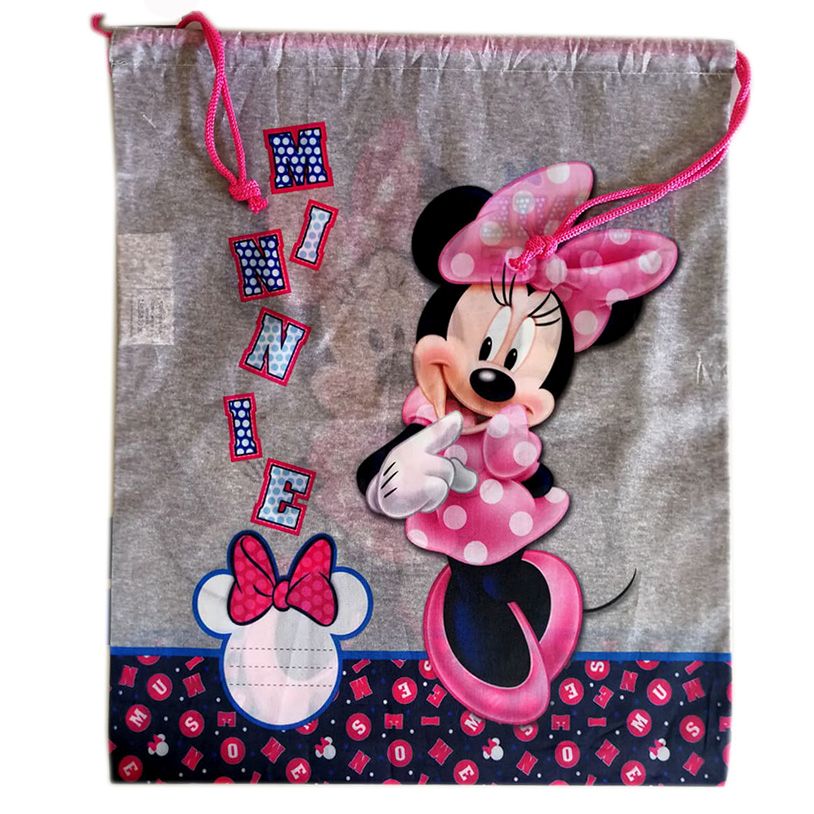 Vrecko na prezúvky ideálne do školy alebo škôlky. Vrecko je vhodné na prezúvky alebo oblečenie, výtvarnú výchovu ale aj na bežné nosenie. Vďaka krásnemu vzoru obľúbenej postavičky Minnie si ho hneď obľúbi každé dievča. Vďaka šnúrkam tento vak môžete nosiť na chrbte. Rozmery vrecka sú 42 x 32cm. Na vrecku je vyhradený priestor na napísanie mena. Vzor si prosím zaškrtnite v číselníku.