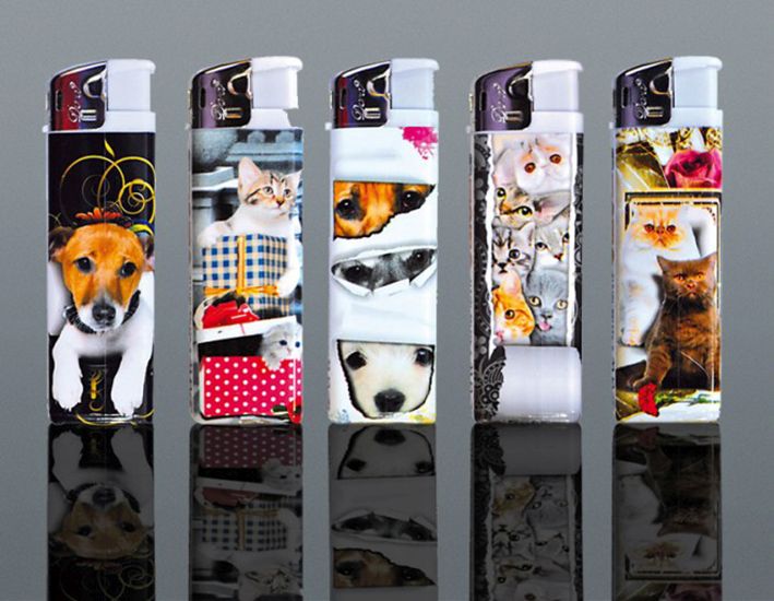 Piezoelektrický zapaľovač s motívom domácich miláčikov psy a mačky. Horí na klasický plameň. Po vyčerpaní plynu sa zapaľovač plní zo spodnej časti pomocou vzduchotesného ventilu. Všetky naše zapaľovače majú certifikát ochrany pred deťmi, ktoré vyžadue EÚ ISO-09994. Darček určený fajčiarom.