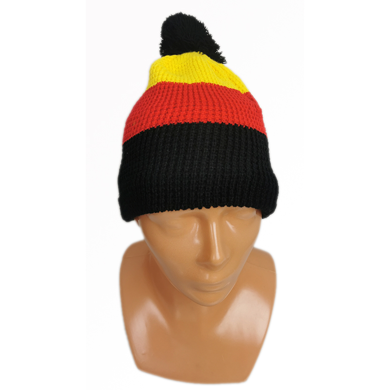Teplá hrubá zimná čiapka v nemeckej trikolóre Vás ohreje počas studených zimných dní. Vhodná pre dospelých aj pre deti.