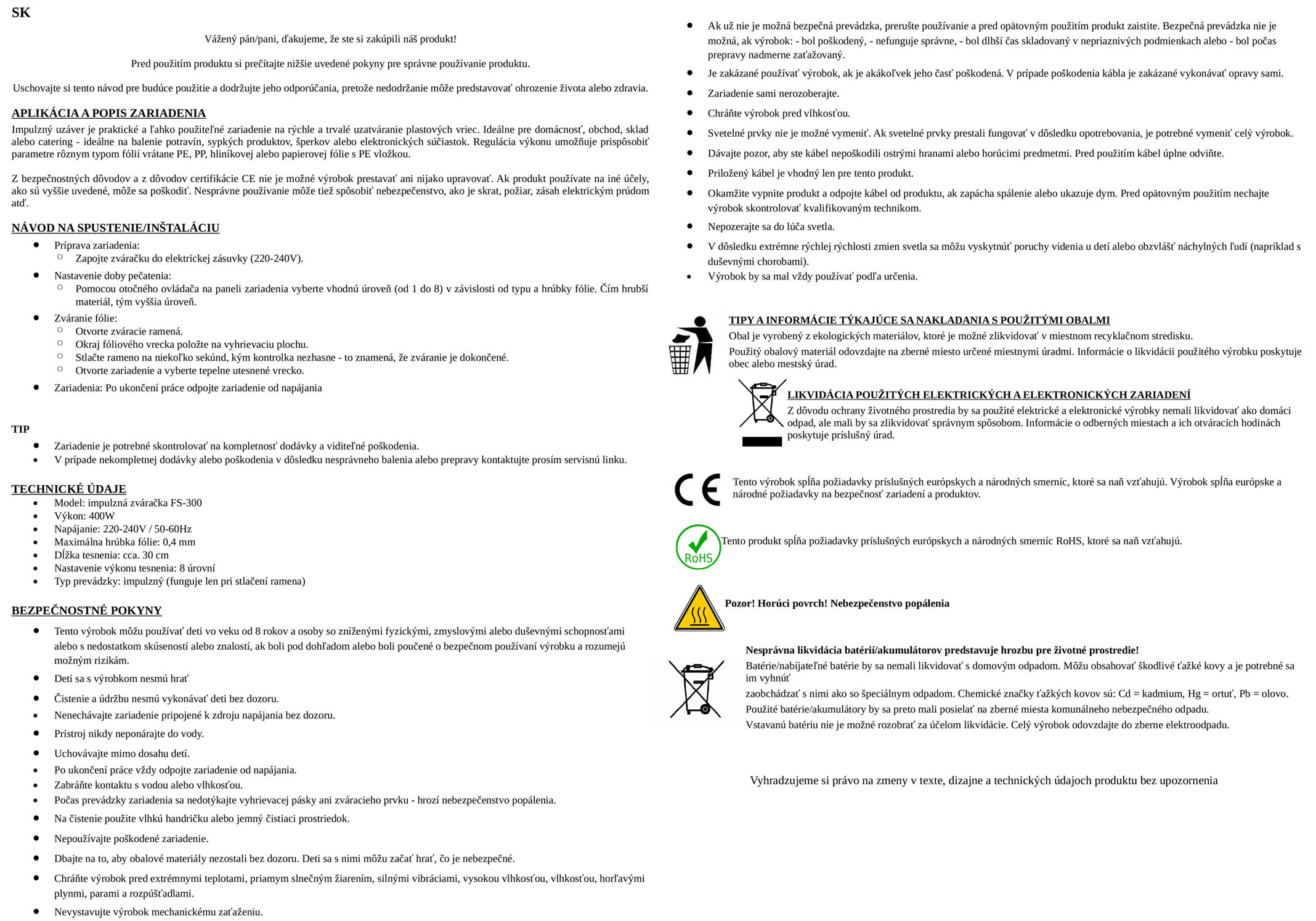 Táto impulzná zváračka umožňuje jednoducho a rýchlo uzatvárať rôzne typy fóliových obalov. Pomáha chrániť potraviny pred baktériami, vlhkosťou a miešaním vôní v chladničke či mrazničke. Zákazníci oceňujú najmä jednoduché ovládanie, rýchly ohrev, nastaviteľný čas zvárania a spoľahlivý 30 cm dlhý zvar, ktorý je vhodný pre väčšinu bežných sáčkov a fólií.