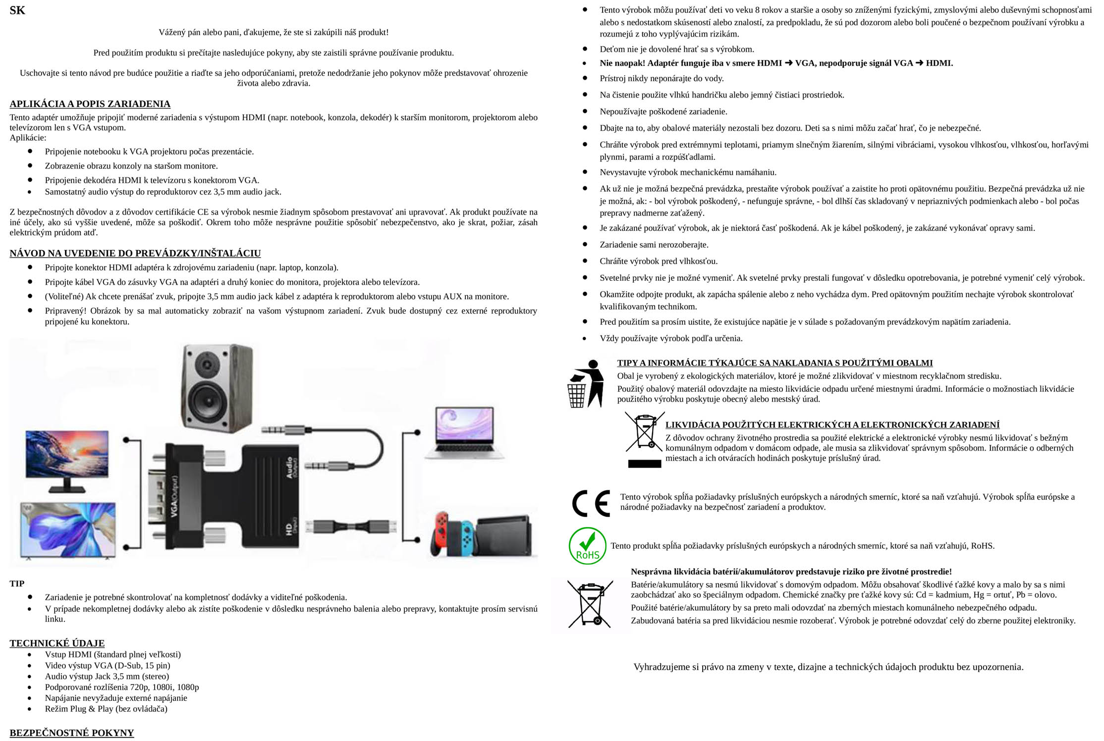 Adaptér HDMI/VGA D-SUB AudioSkladom6,99 €/ ks5,68 € bez DPH