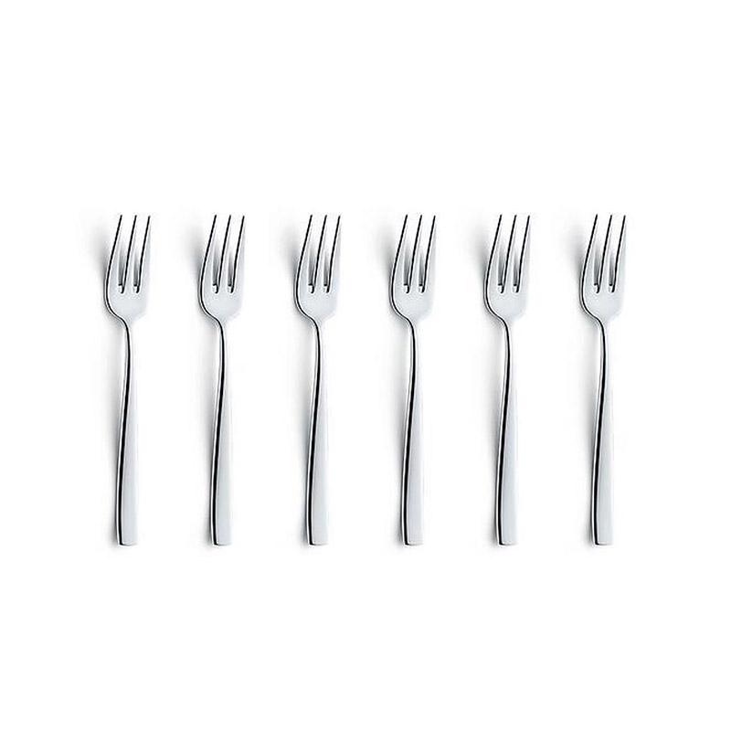 Sada dezertných vidličiek. Vidličky sú vyrobené z kvalitnej nerezovej ocele a sú striebornej farby.