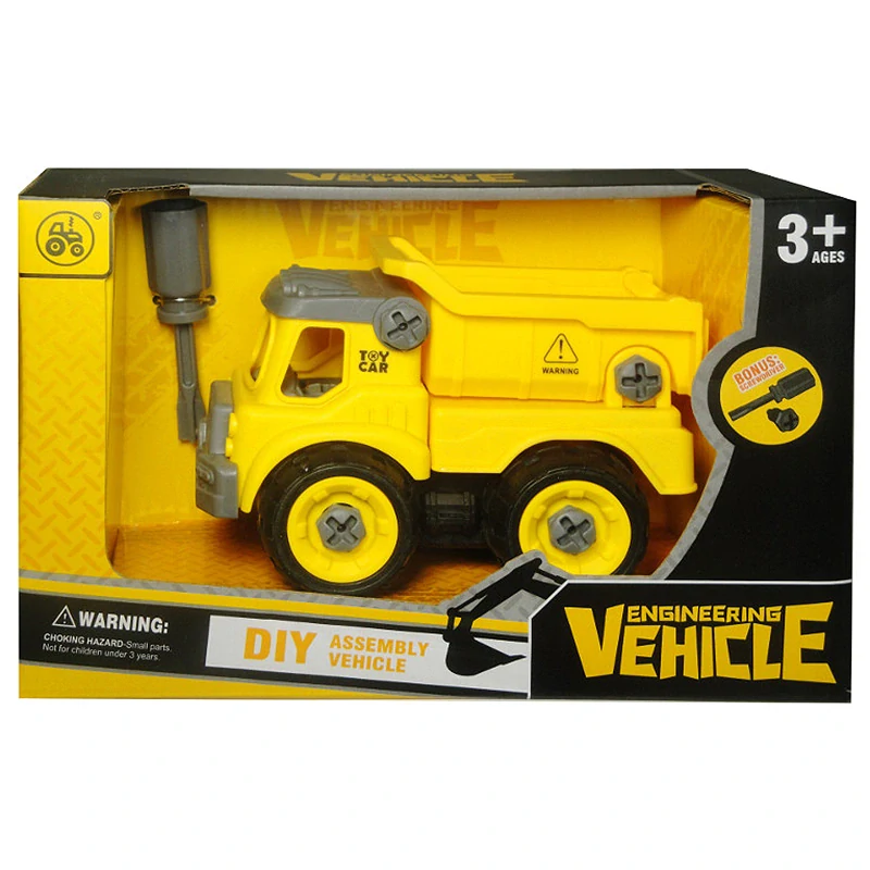 Obsah súpravy - montážne diely stavebného vozidla, - skrutkovač