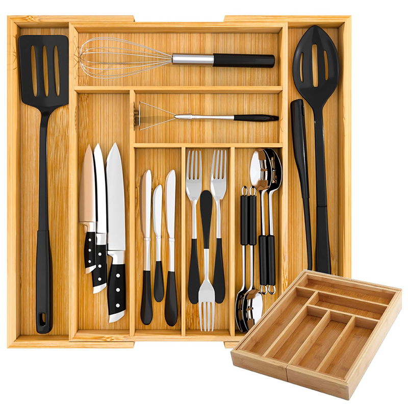 Nielen príbory! Náš organizér je dostatočne priestranný, aby sa do neho zmestili aj ďalšie kuchynské náčinie, ako sú nože, vidličky, lyžice, špachtle a mnoho ďalšieho. Toto je ideálne miesto na úplné usporiadanie vašich kuchynských potrieb.