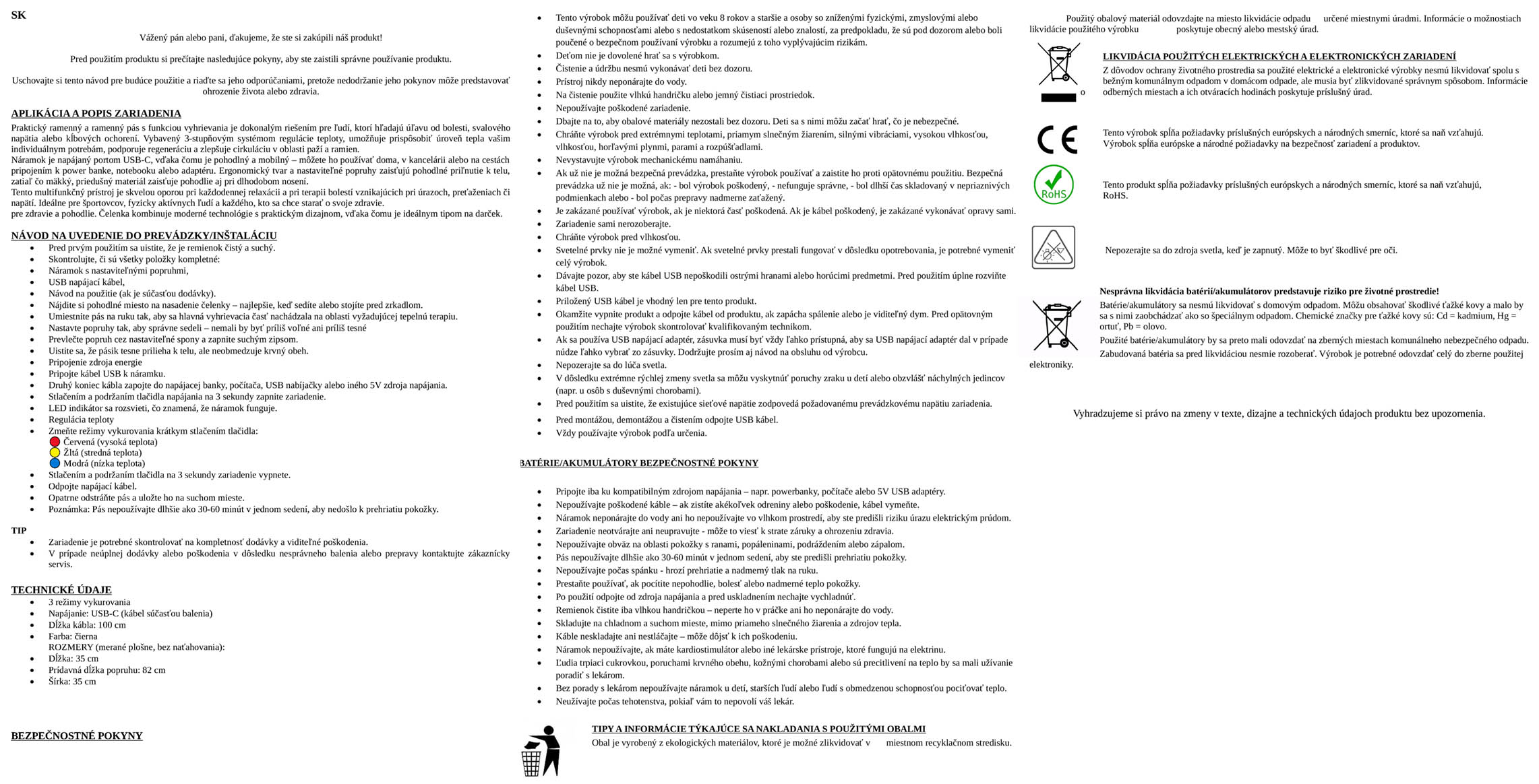 - Bandáž na rameno USB s vyhrievaním