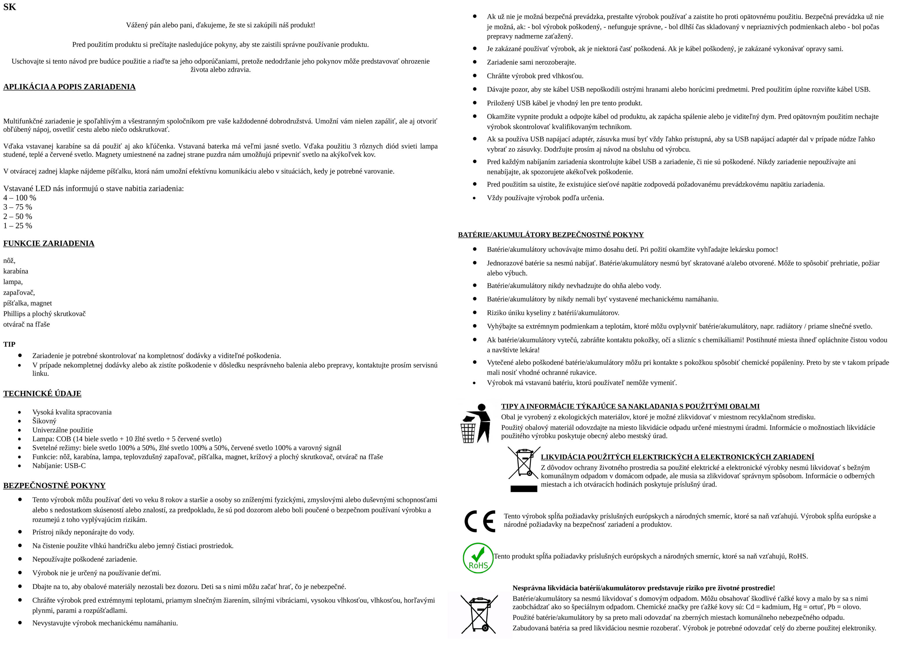 Návod na použitie multifunkčnej baterky Survival 8v1