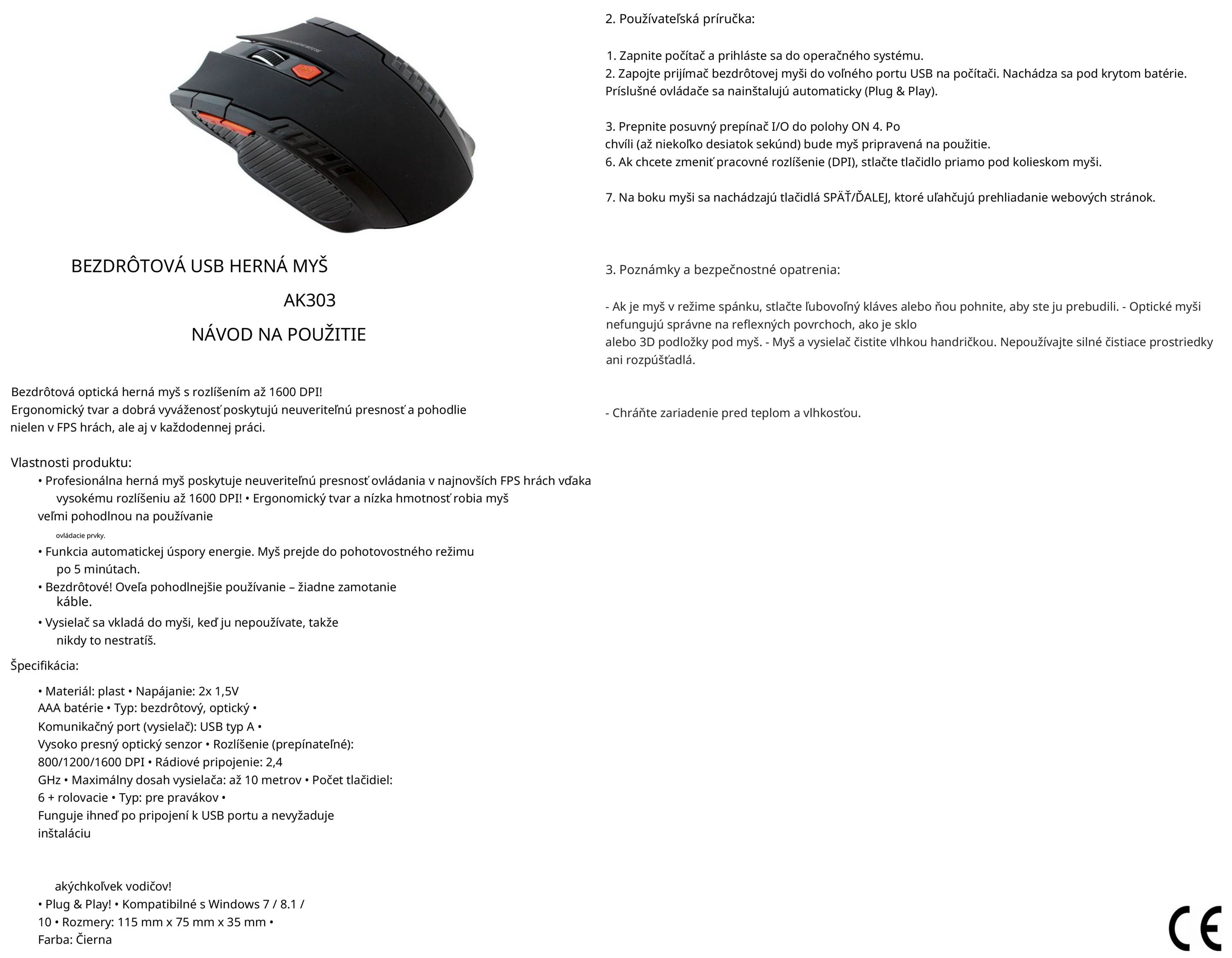 Táto bezdrôtová herná myš ponúka praktickú kombináciu presnosti, pohodlia a jednoduchej obsluhy, vďaka čomu je vhodná na hry aj každodenné používanie počítača bez zbytočných komplikácií.