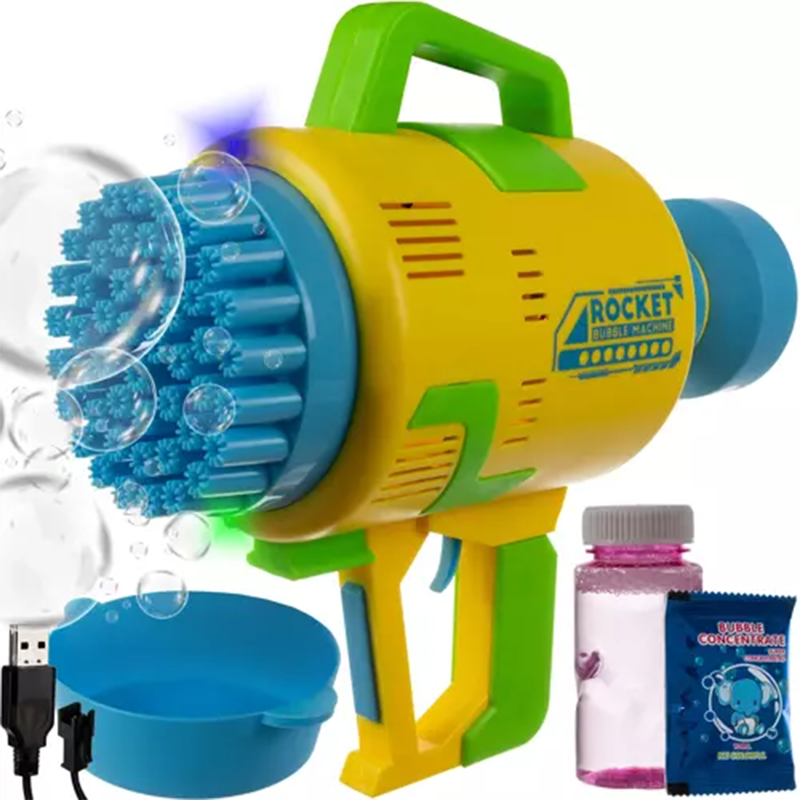 VEĽA BUBLÍN ZA PÁR SEKÚND - bublinková bazuka má až 48 otvorov, ktoré dokážu vyfúknuť veľa bublín za minútu. To sa deje pomocou ventilátora zabudovaného do bazuky.