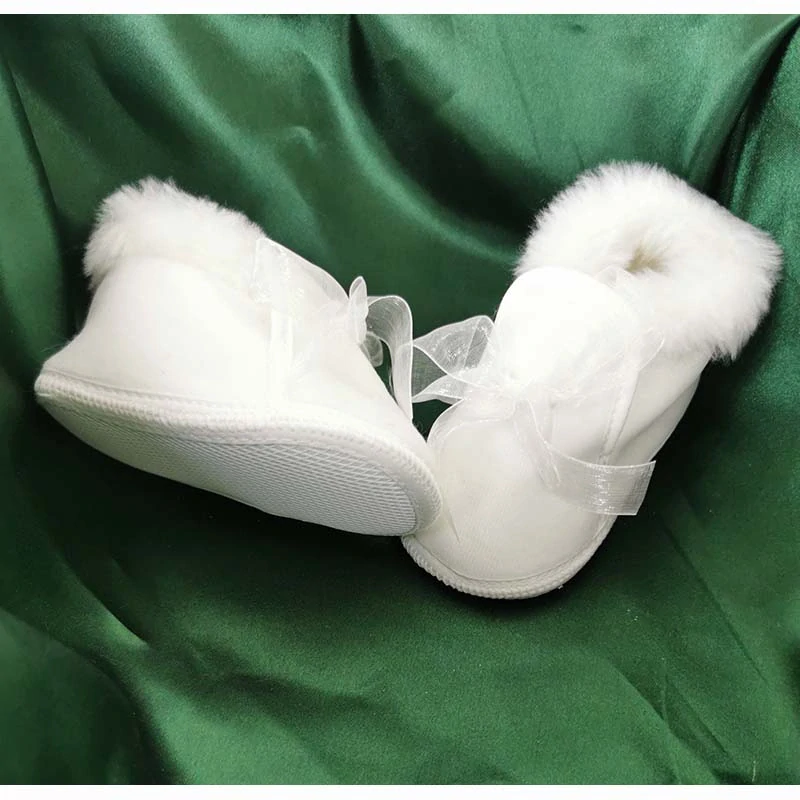 Tieto rozkošné biele capačky s kožušinkou sú ideálne pre bábätká počas chladnejších dní. Ich jemné spracovanie, mäkká výstelka a teplý kožušinový vnútorný povrch zaručujú pohodlie a hrejivý pocit pri každom kroku.