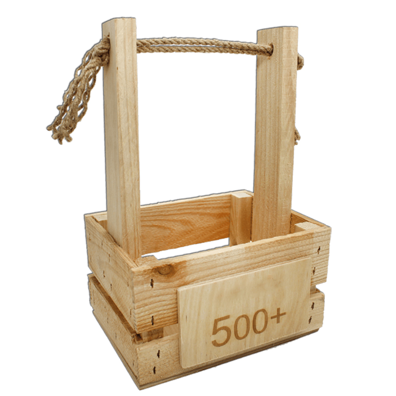 Originálne miesto na uskladnenie sklenených fliaš? Možno zaujímavý nápad na darček alebo elegantné podávanie nápojov? Pohodlná rukoväť z jutového lana uľahčuje prenášanie a zdôrazňuje prírodný charakter výrobku.