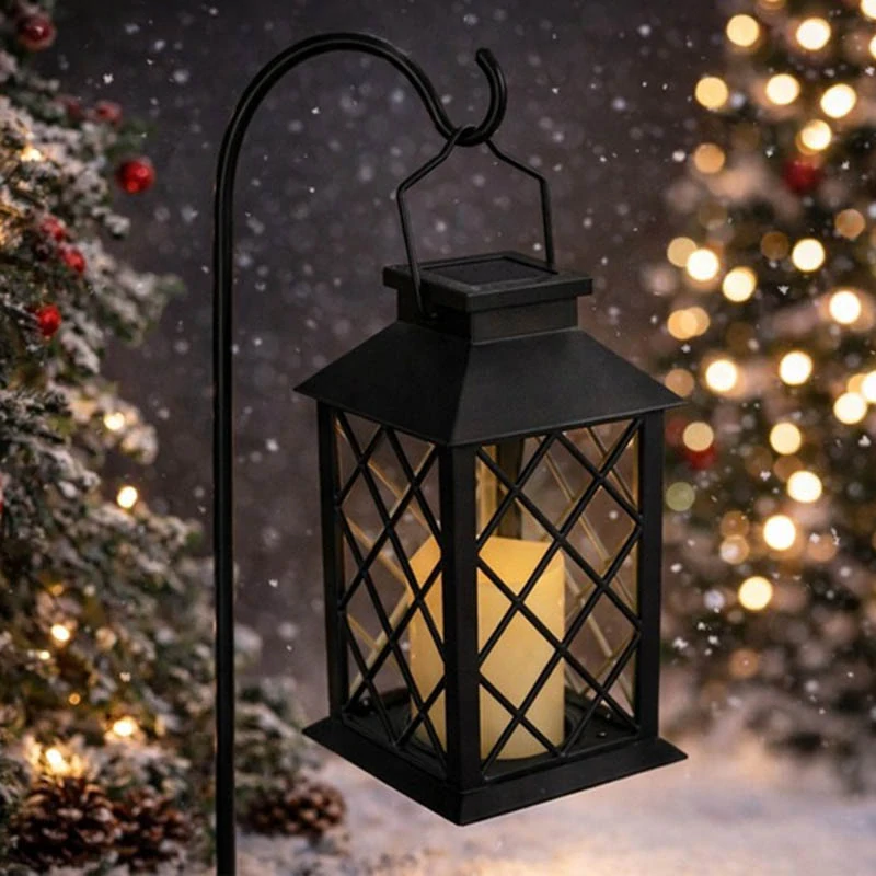 - Dekoratívny solárny LED lampáš s elektrickou sviečkou čierny