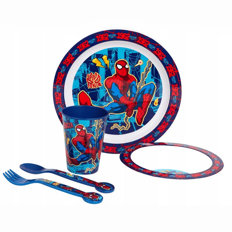 Farebná jedálenská sada s motívom obľúbenej postavy Spiderman je ideálnou voľbou pre každé dieťa. Praktická a bezpečná súprava spríjemní každodenné stolovanie a podporí deti pri osvojovaní si samostatného jedenia.