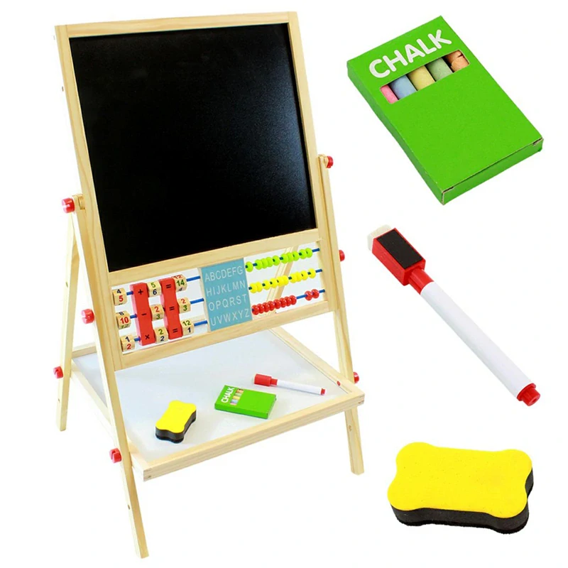 Rám tabule je vyrobený z dreva a stojan zabezpečuje stabilitu pri používaní. Vstavaná polica poskytuje miesto na uloženie kried, fixky alebo špongie, takže všetko potrebné je vždy po ruke.