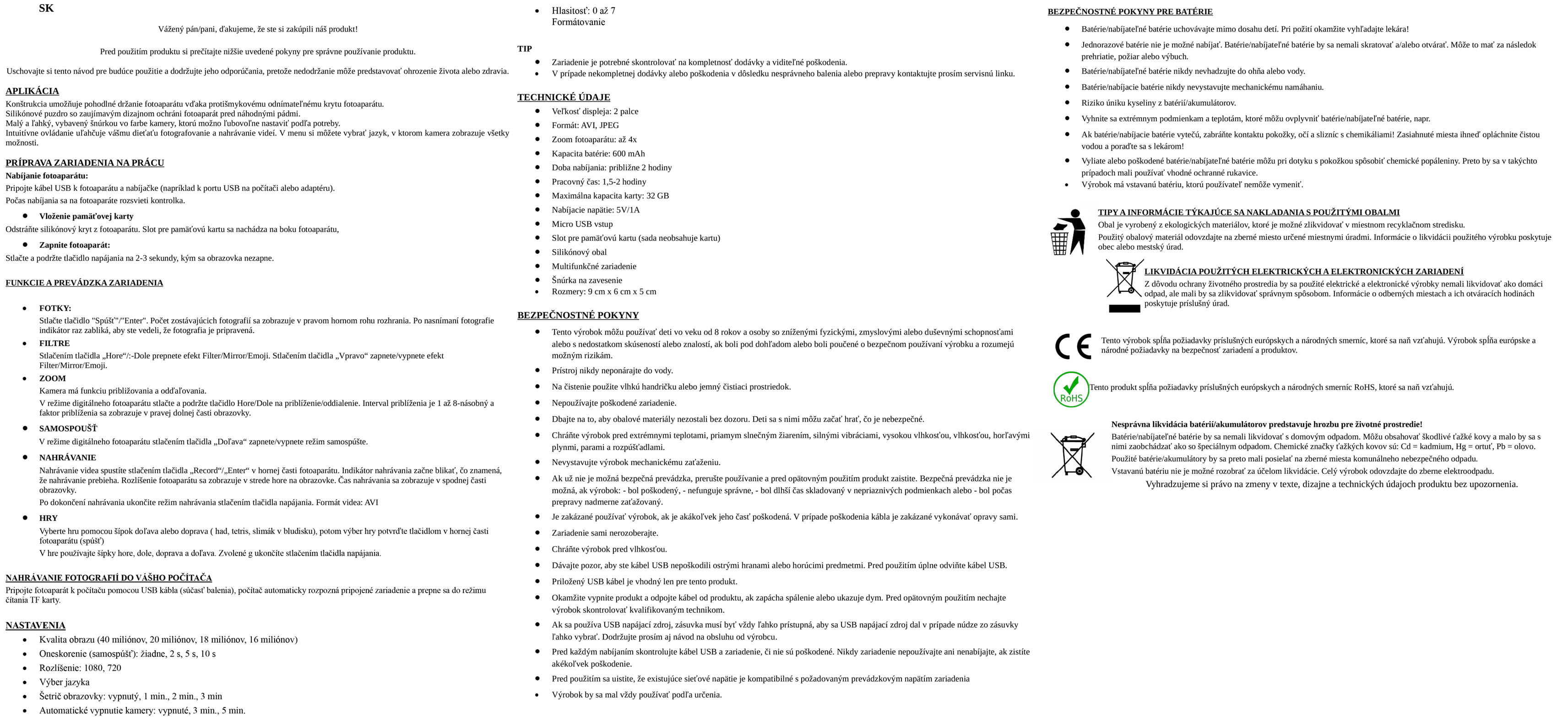 Návod na použitie detského fotoaparátu