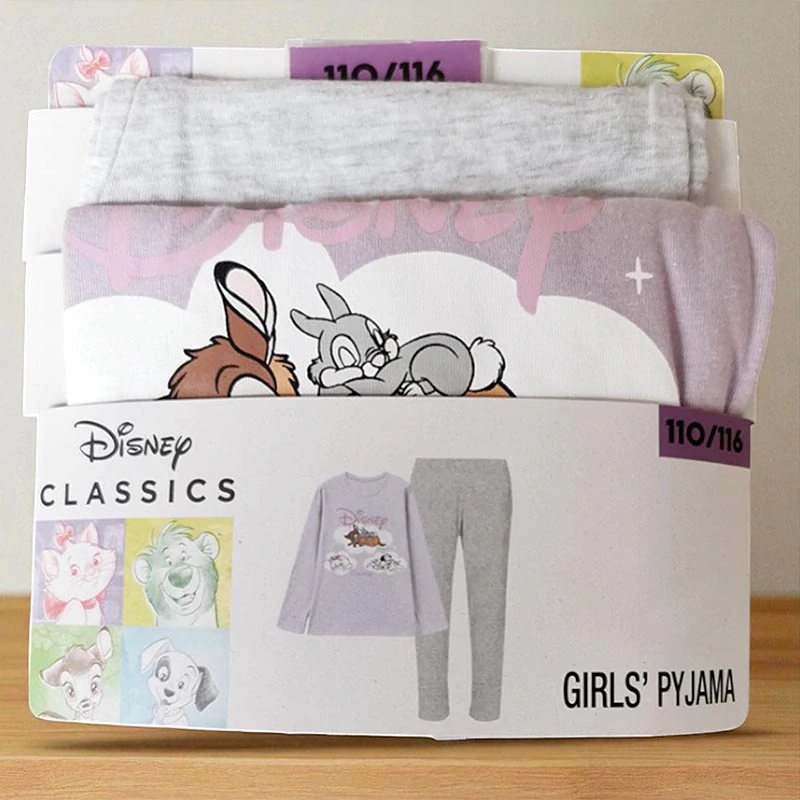 Toto krásne dievčenské pyžamo Disney Classics s obľúbenými postavičkami Bambi a jeho kamarátov prinesie do večerných chvíľ pohodu a úsmev. Pyžamo je vyrobené z príjemnej bavlny, ktorá je jemná k detskej pokožke, a zároveň poskytuje dostatočné pohodlie počas celej noci.