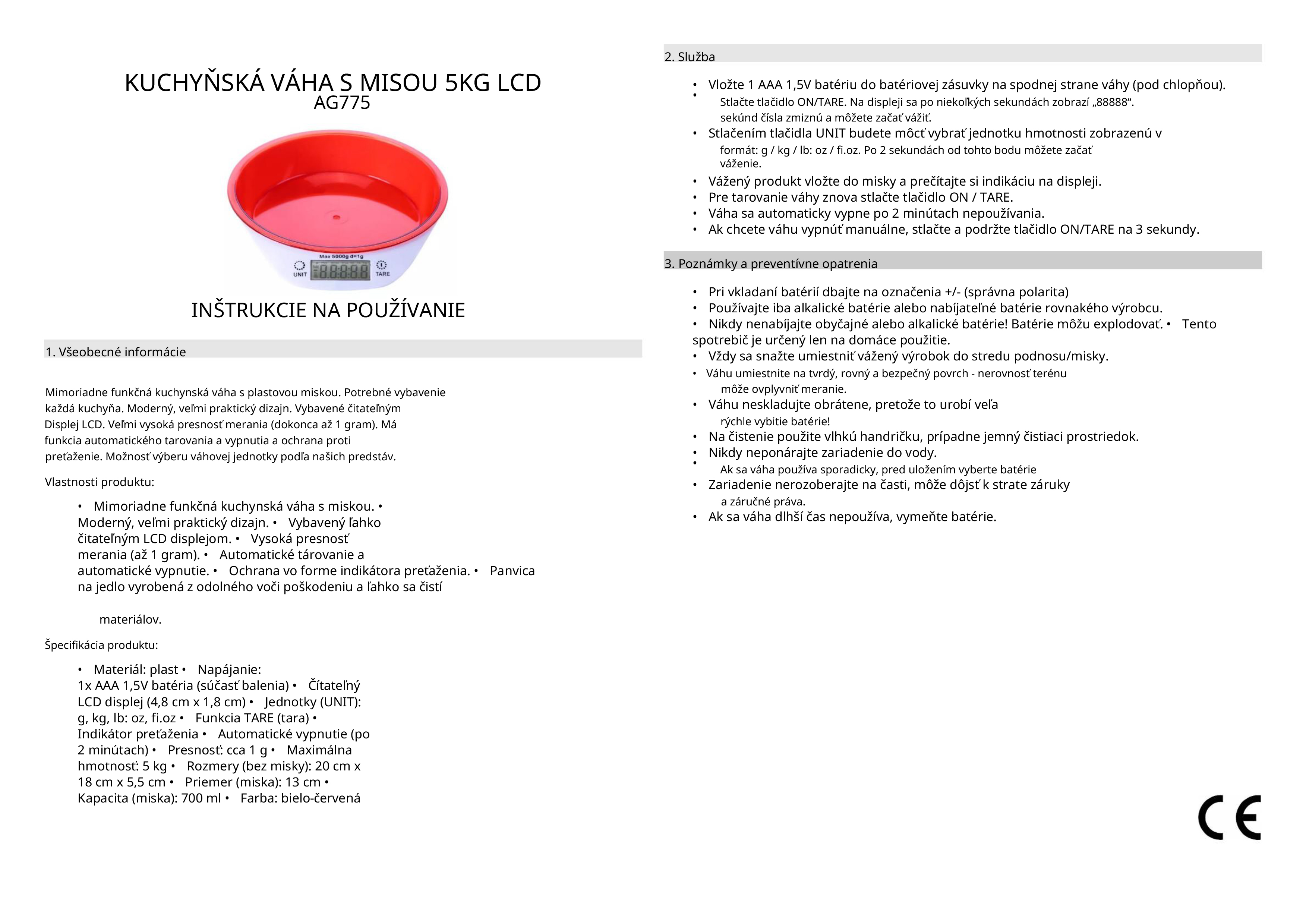 - Funkcie: TARE, automatické vypnutie, termometer, indikátor preťaženia