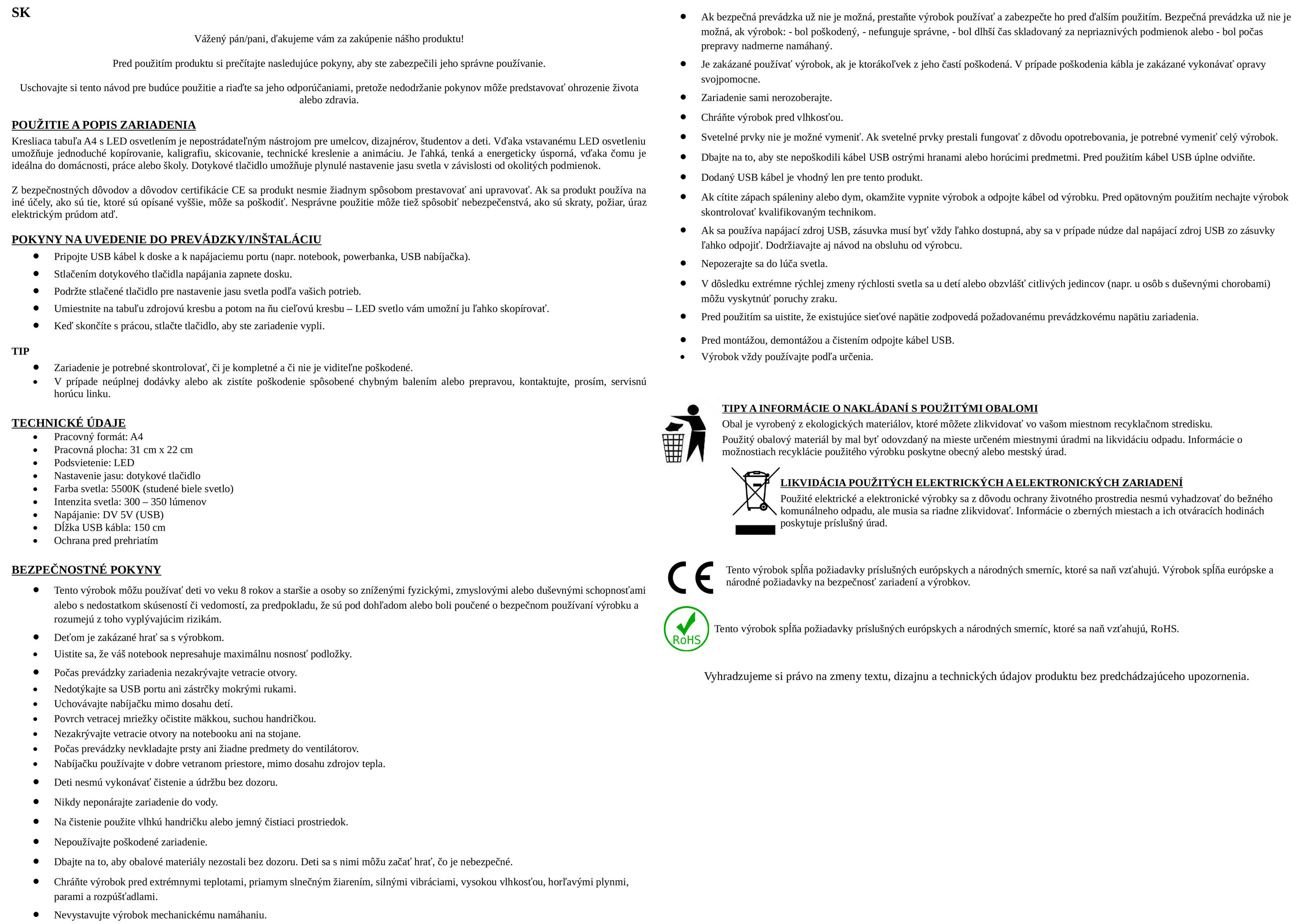 Návod na použitie LED podsvietenej kopírovacej dosky