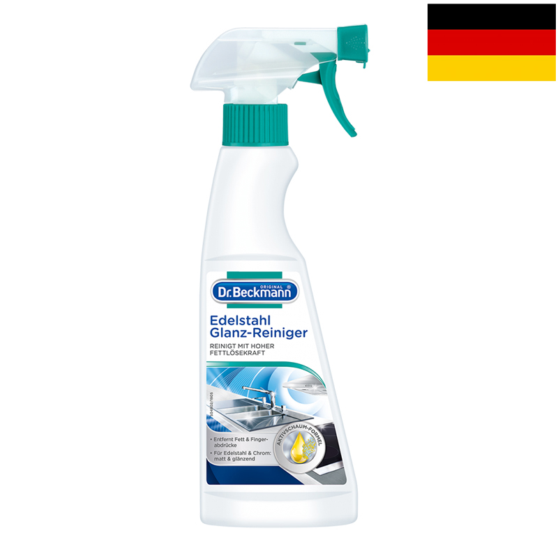 Brat. Beckmann je ideálny na čistenie drezov, vodovodných batérií, digestorov, čiel, nábytku a panelov, kuchynského náradia atď. Ľahko odstraňuje škvrny od mastnoty, vody a špiny, ako aj matnosť a odtlačky prstov. Stará sa a chráni. Poskytuje dlhotrvajúci, hlboký lesk. Striekaná pena ideálna na veľké a vertikálne plochy. Tiež na priľahlé povrchy, napríklad sklo, plast.