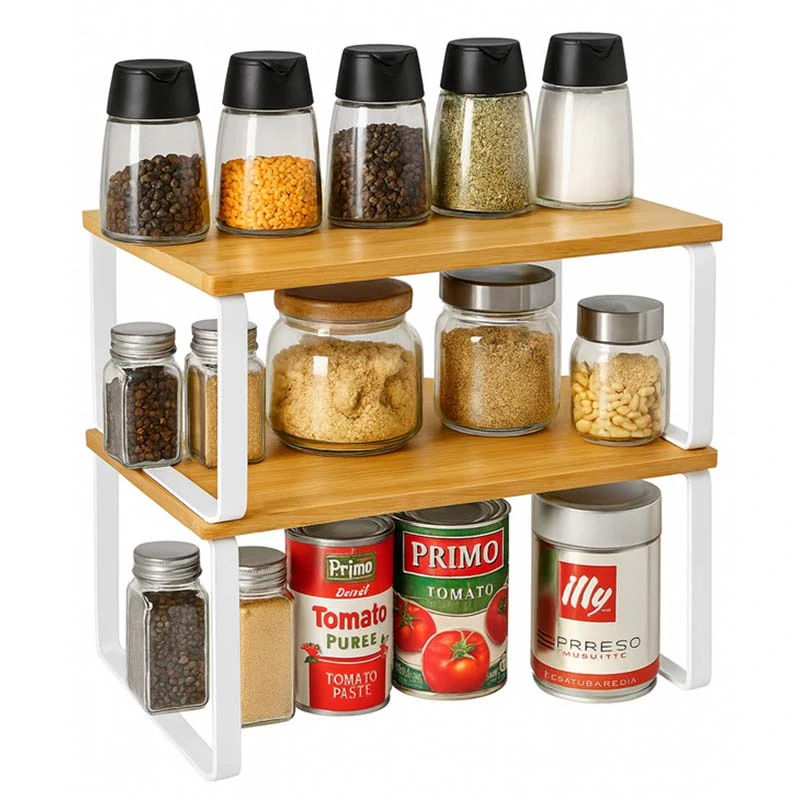 Dvojposchodový kuchynský organizér – sada 2 políc je praktickým riešením pre každého, kto chce získať viac priestoru a prehľad v domácnosti. Vďaka jednoduchej konštrukcii, variabilnému použitiu a prirodzenému dizajnu sa stáva nenápadným, ale užitočným pomocníkom pri každodennej organizácii.
