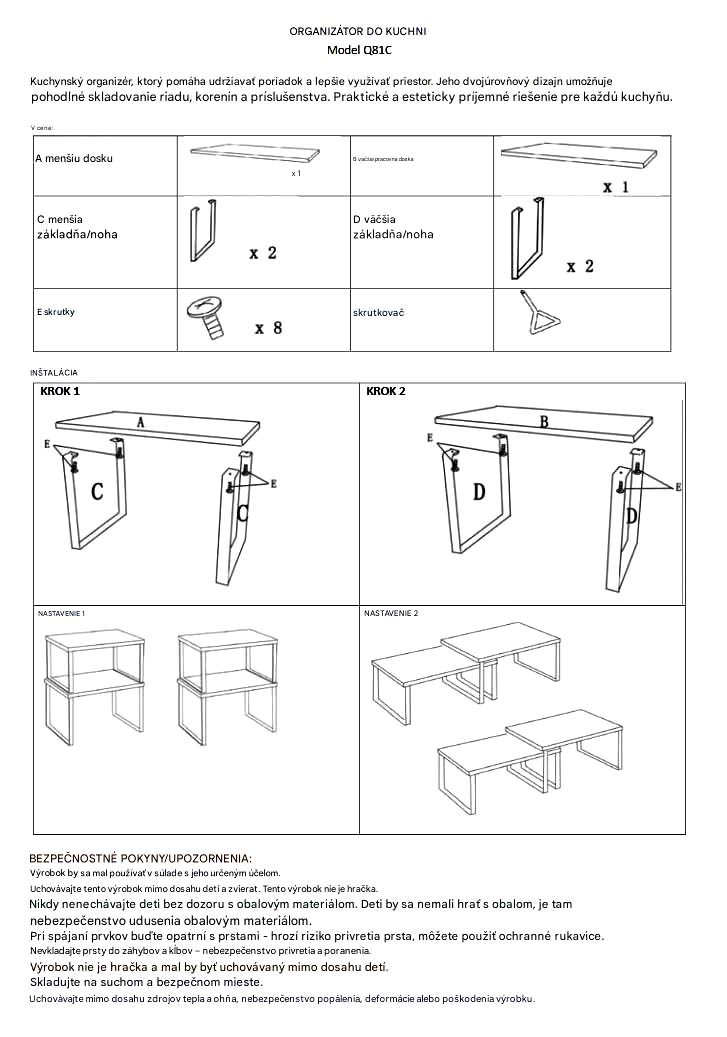 Udržať poriadok v kuchyni alebo na pracovnom stole býva náročné najmä v menších priestoroch. Rôzne dózy, koreniny, plechovky či drobnosti zaberajú miesto a často sa hromadia bez jasného systému. Dvojposchodový kuchynský organizér v podobe sady dvoch políc ponúka praktické riešenie, ktoré pomáha využiť vertikálny priestor a získať prehľad v uložených veciach.