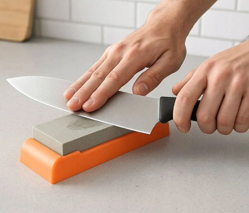 Ak používate brúsny kameň pravidelne, vaše nože zostanú ostré dlhodobo bez potreby profesionálneho brúsenia. Po každom brúsení čepeľ jemne preleštite utierkou pre dokonalý výsledok.