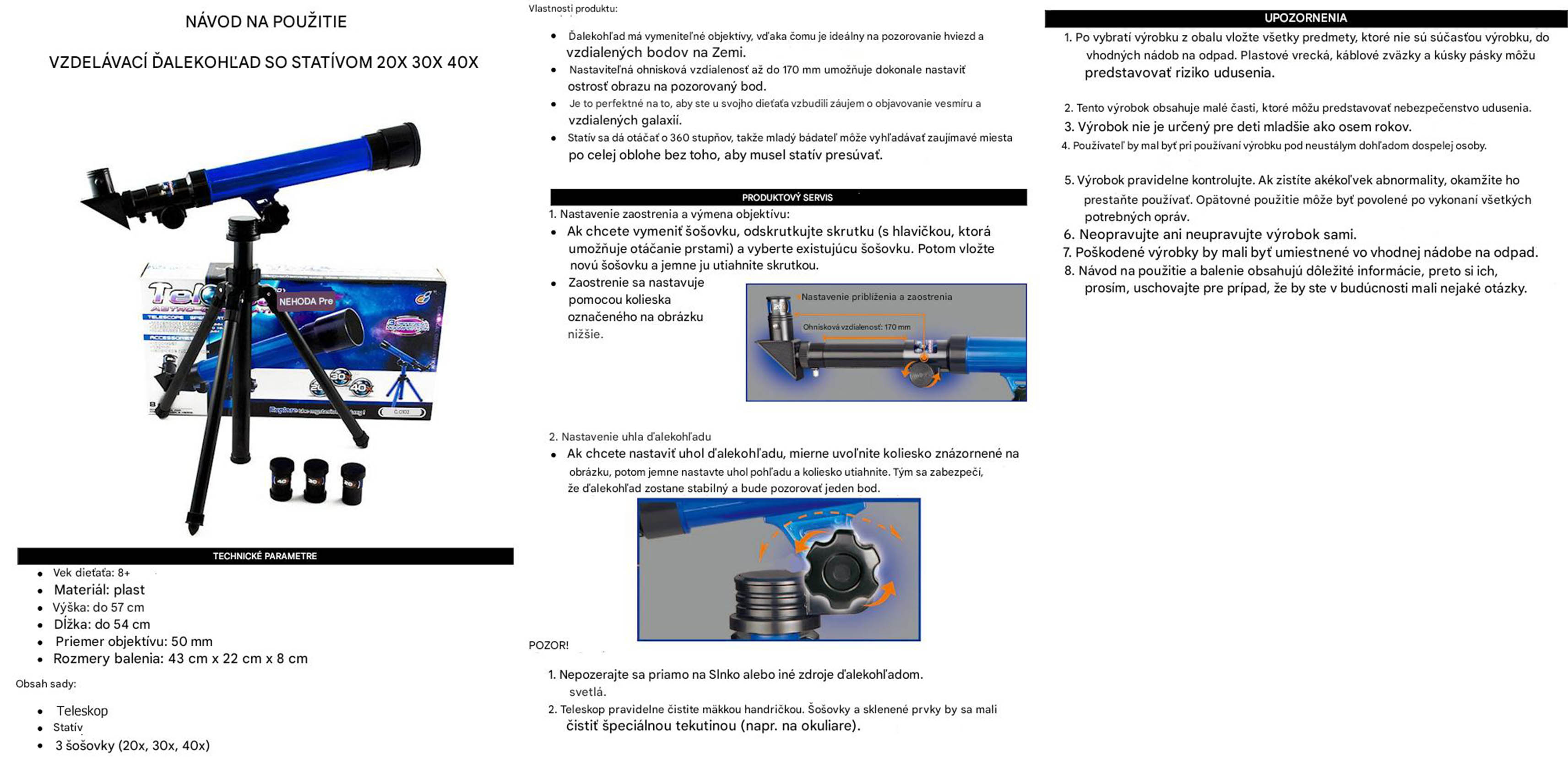 - Edukačný teleskop so statívom 20× / 30× / 40× – ďalekohľad pre deti