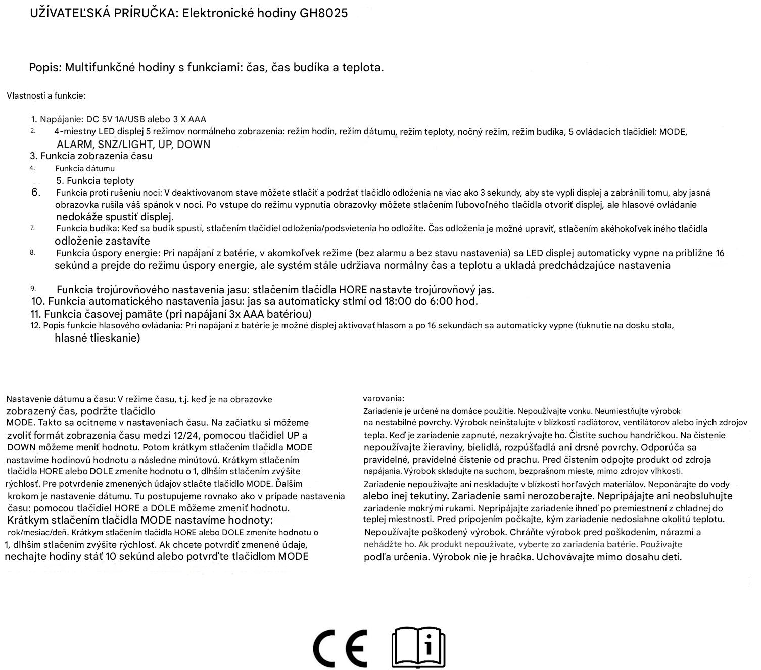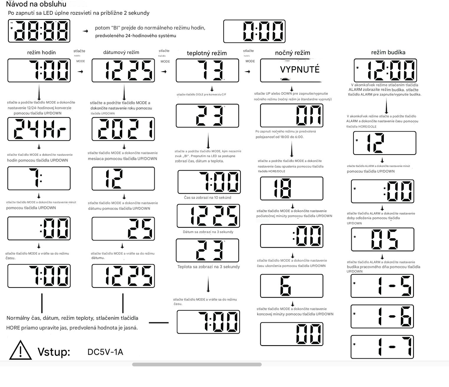 - Možnosť prepínania medzi 12/24-hodinovým formátom času.