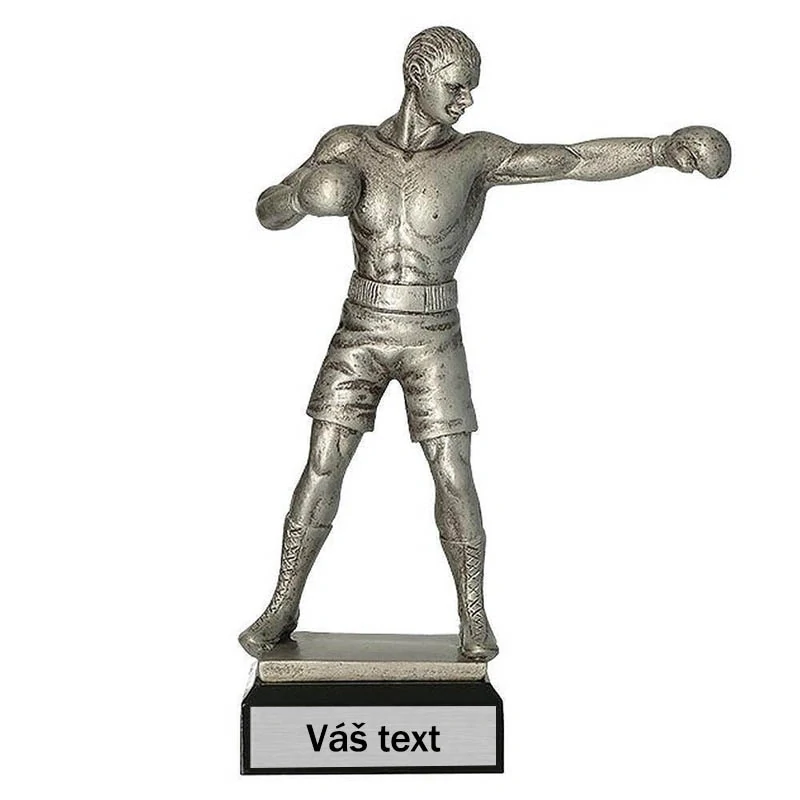Trofej boxer zo živice strieborná 25 cm – ocenenie pre silu, odvahu a víťazstvo v ringu