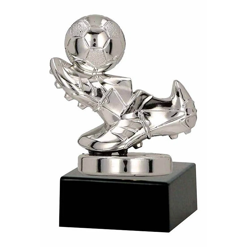 Elegantná trofej pre futbalistu – Strieborné kopačky s loptou na mramorovom podstavci. Ideálne pre najlepšieho strelca alebo hráča.