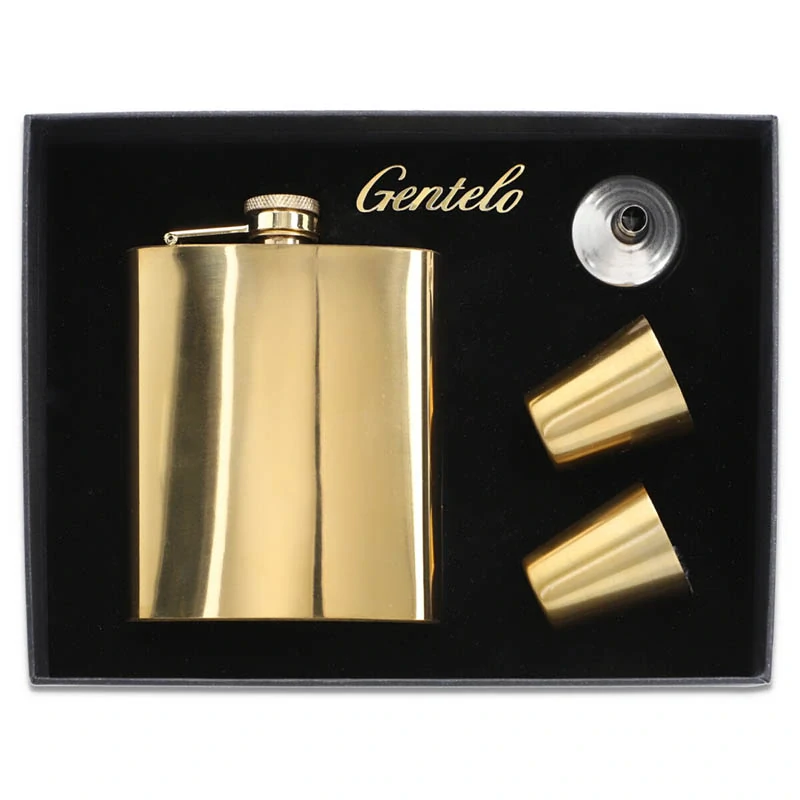 Gentelo Ploskačka 210ml zlatá s lievikom a pohárikmi