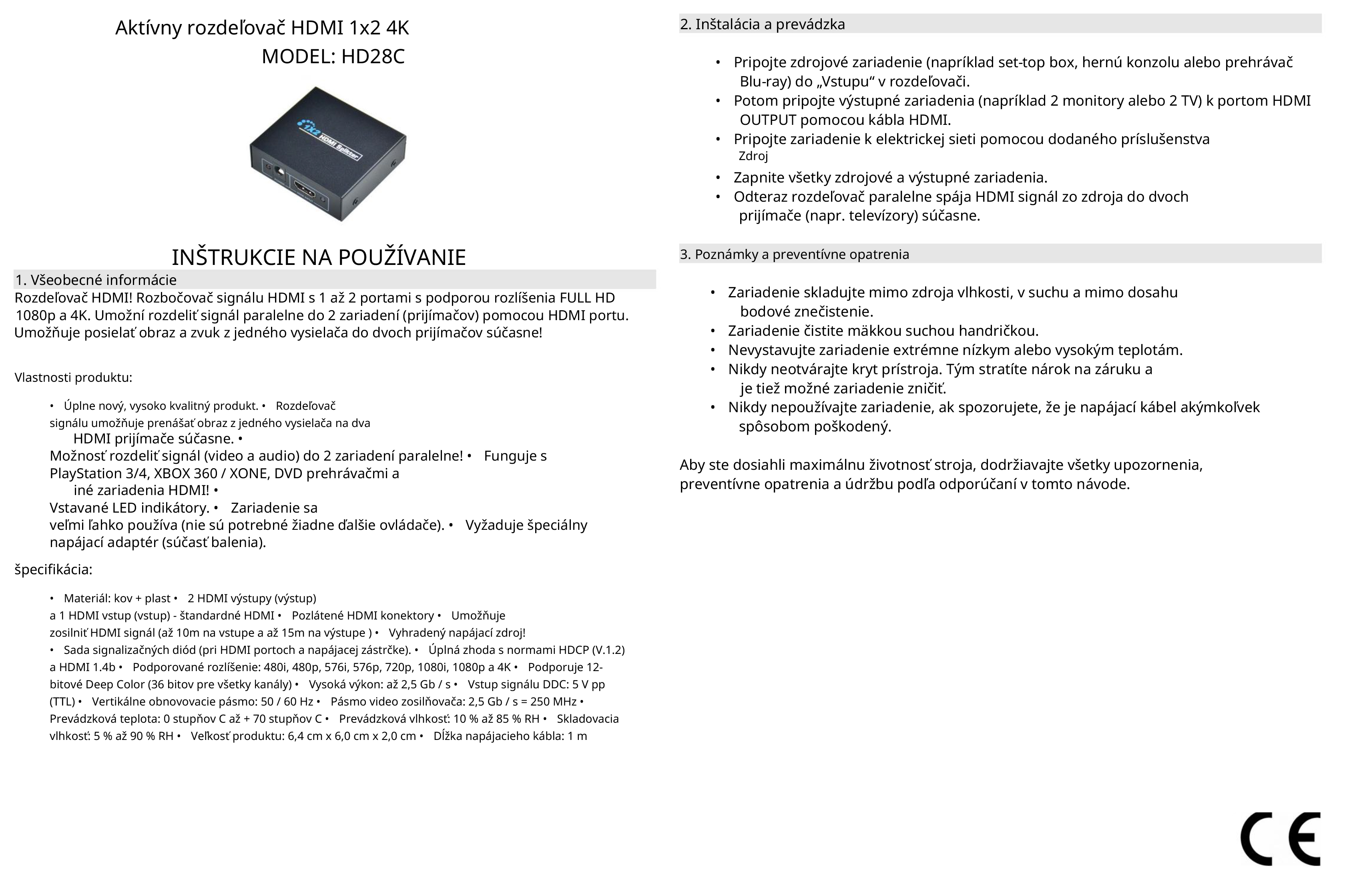 Návod na použitie HDMI aktívneho splitteru
