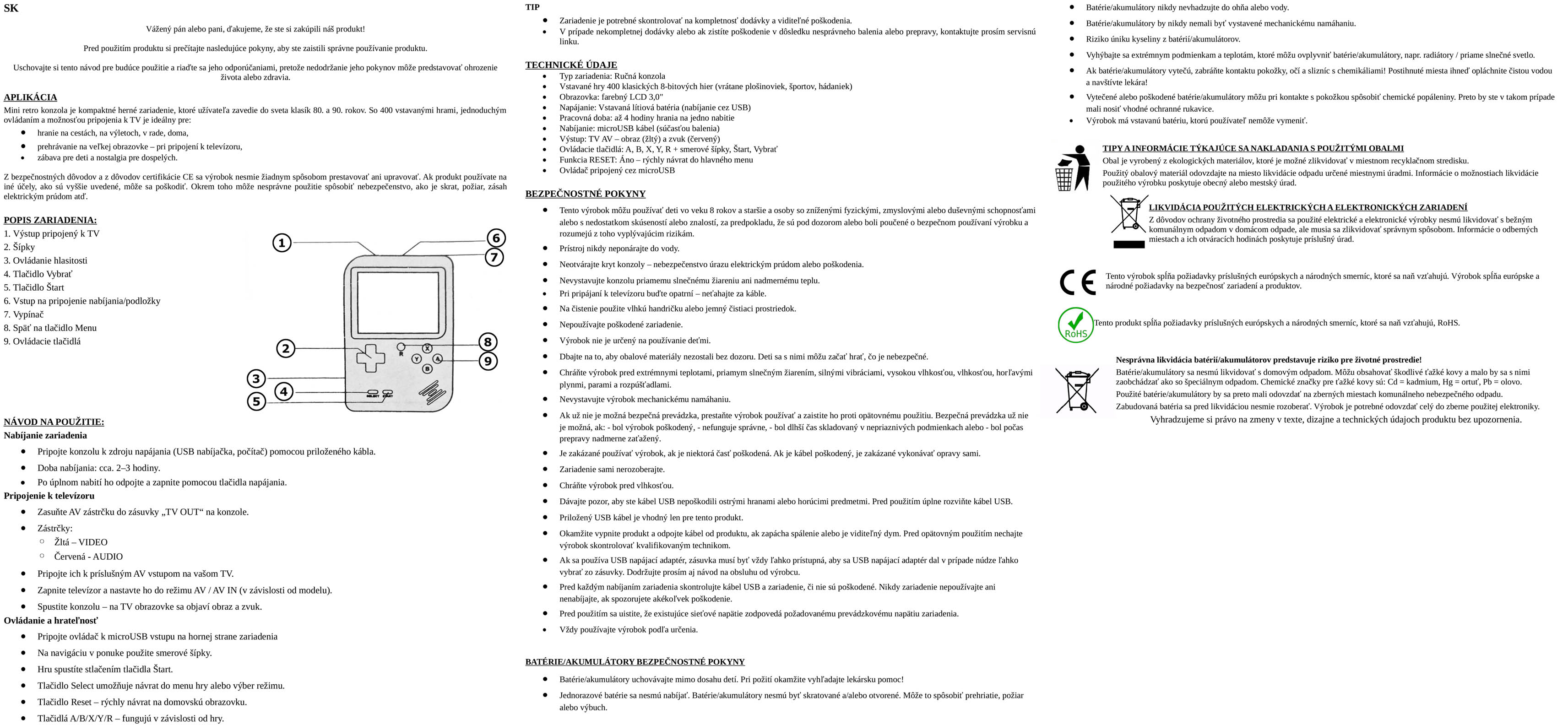 Návod na použitie Herná konzola Sup Retro