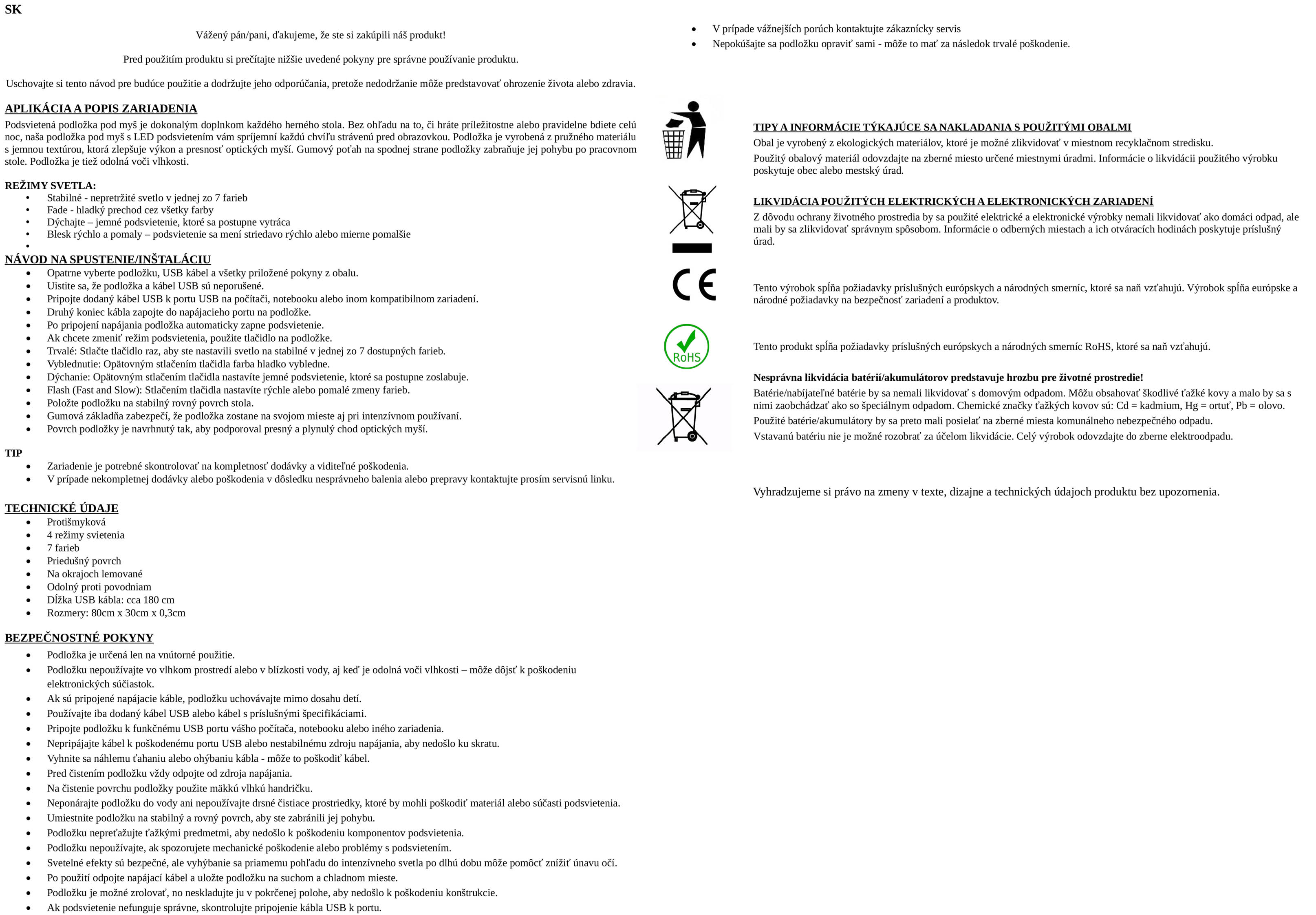 Hráčska podložka pod myš RGB 80x30cmSkladom16,90 €/ ks13,74 € bez DPH