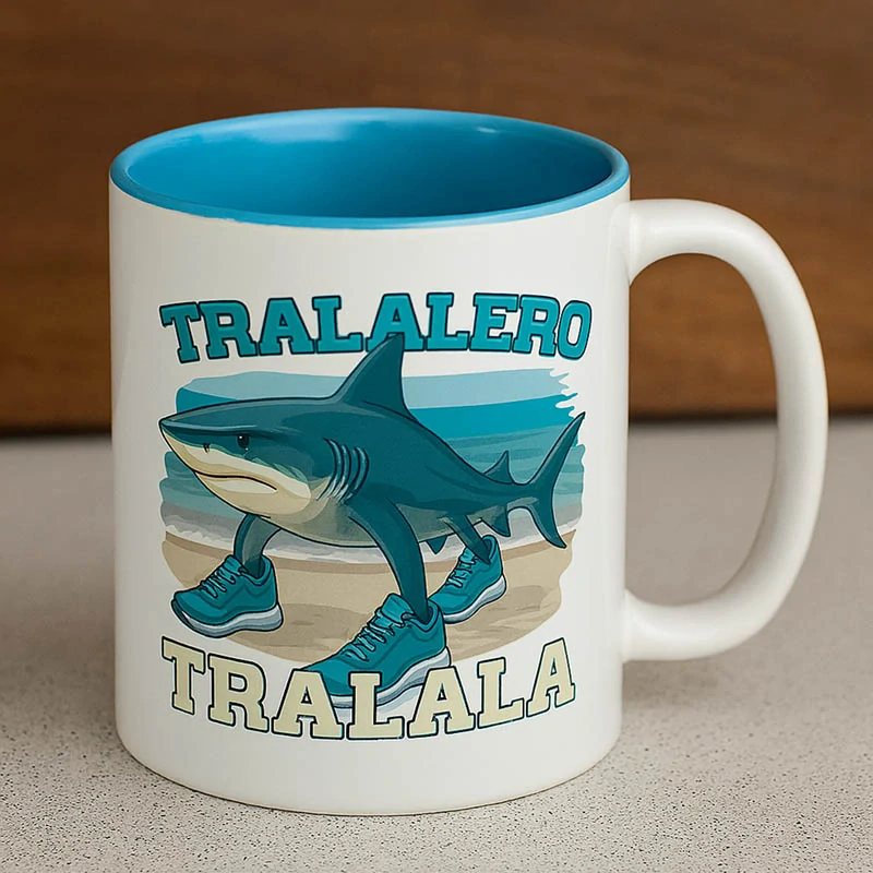Tento originálny hrnček s potlačou Tralalero Tralala je ideálny pre všetkých, ktorí milujú internetové meme a radi sa odlíšia niečím výnimočným. Motív pochádza z virálneho videa známeho ako „Italian Brainrot“, ktoré sa v roku 2025 stalo hitom najmä na TikToku. Trojnohý žralok v bielych teniskách spieva nezmyselný, no chytľavý refrén „tralalero tralala“ – a práve túto scénu zachytáva potlač na tomto hrnčeku.