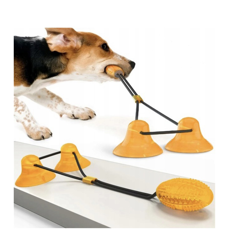 Celá hračka je konštruovaná tak, aby pes po prilepení prísavky k podlahe alebo inému miestu mohol ťahať za loptičku na druhom konci.