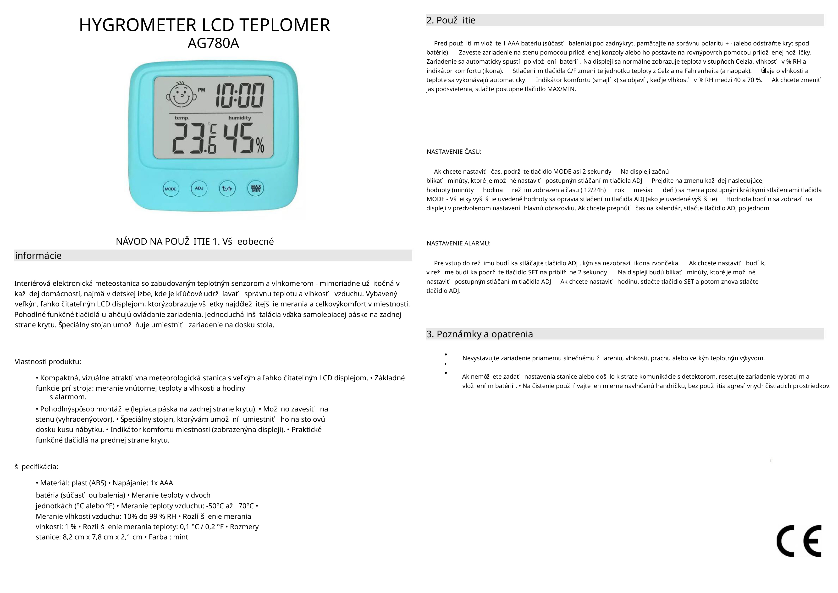 Tento elektronický izbový teplomer s vlhkomerom je ideálnym riešením pre každú domácnosť, kde záleží na správnej teplote a kvalite vzduchu. Vďaka zabudovanému senzoru a veľkému LCD displeju budete mať vždy prehľad o podmienkach v miestnosti. Zariadenie je mimoriadne užitočné najmä v detskej izbe, kde optimálna vlhkosť a teplota prispievajú k zdraviu a pohodliu dieťaťa.
