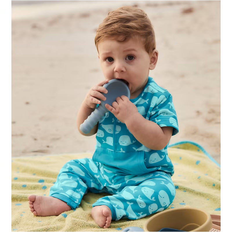 S naťahovacím, pohodlným a praktickým jednodielnym oblekom s hravým celoplošným veľrybím vzorom je bábätko jedným ťahom pripravené na najrôznejšie letné dobrodružstvá!