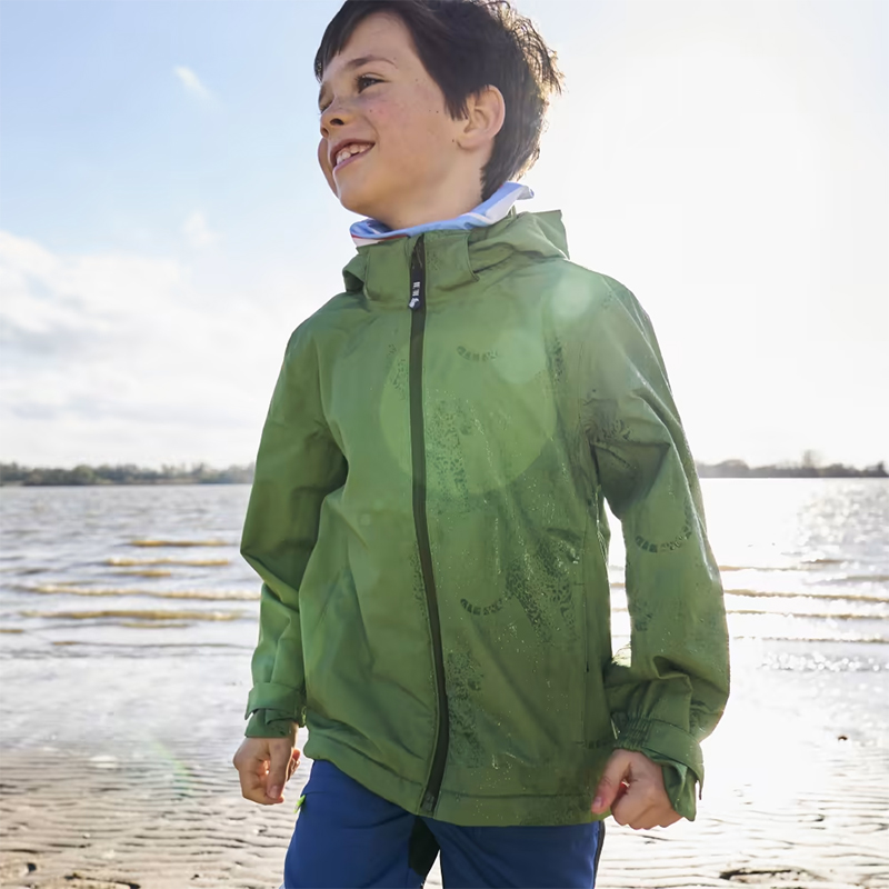 so zvieracou celoplošnou potlačou: objaví sa len vtedy, keď sa bunda dostane do kontaktu s vlhkosťou (napr. dážď alebo sneh).