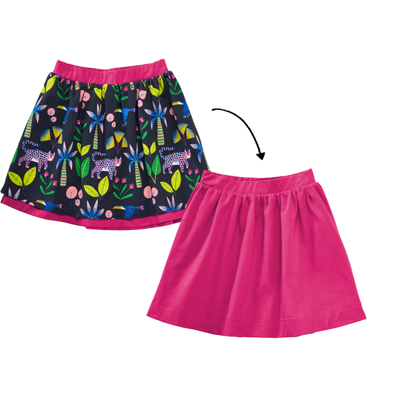 Obojstranná sukňa nielenže vyzerá magicky na oboch stranách. Hodí sa aj vtedy, ak sa jedna strana na cestách zašpiní od jahodovej zmrzliny... Stačí ju prehodiť a sukňa vyzerá, ako keby bola práve vypraná!