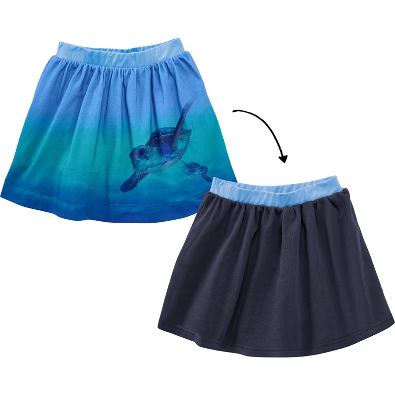 Obojstranná sukňa nielenže vyzerá magicky na oboch stranách. Hodí sa aj vtedy, ak sa jedna strana na cestách zašpiní od jahodovej zmrzliny... Stačí ju prehodiť a sukňa vyzerá, ako keby bola práve vypraná!