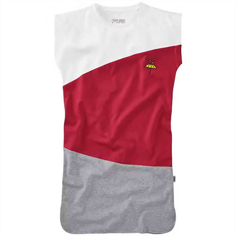 Športové, ležérne šaty s veľkými farebnými vsadkami a peknou výšivkou na hrudi.