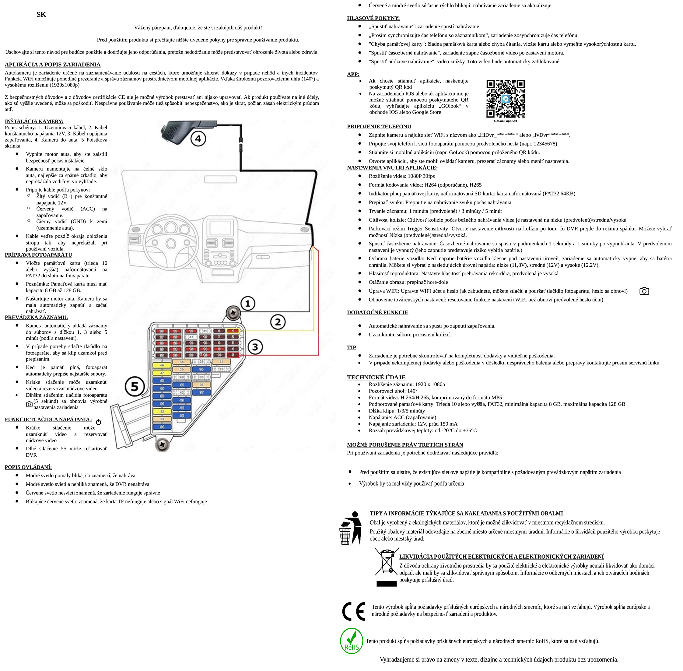 - G-senzor; funkcia DVR; parkovací monitor; detekcia pohybu; nahrávanie v slučke