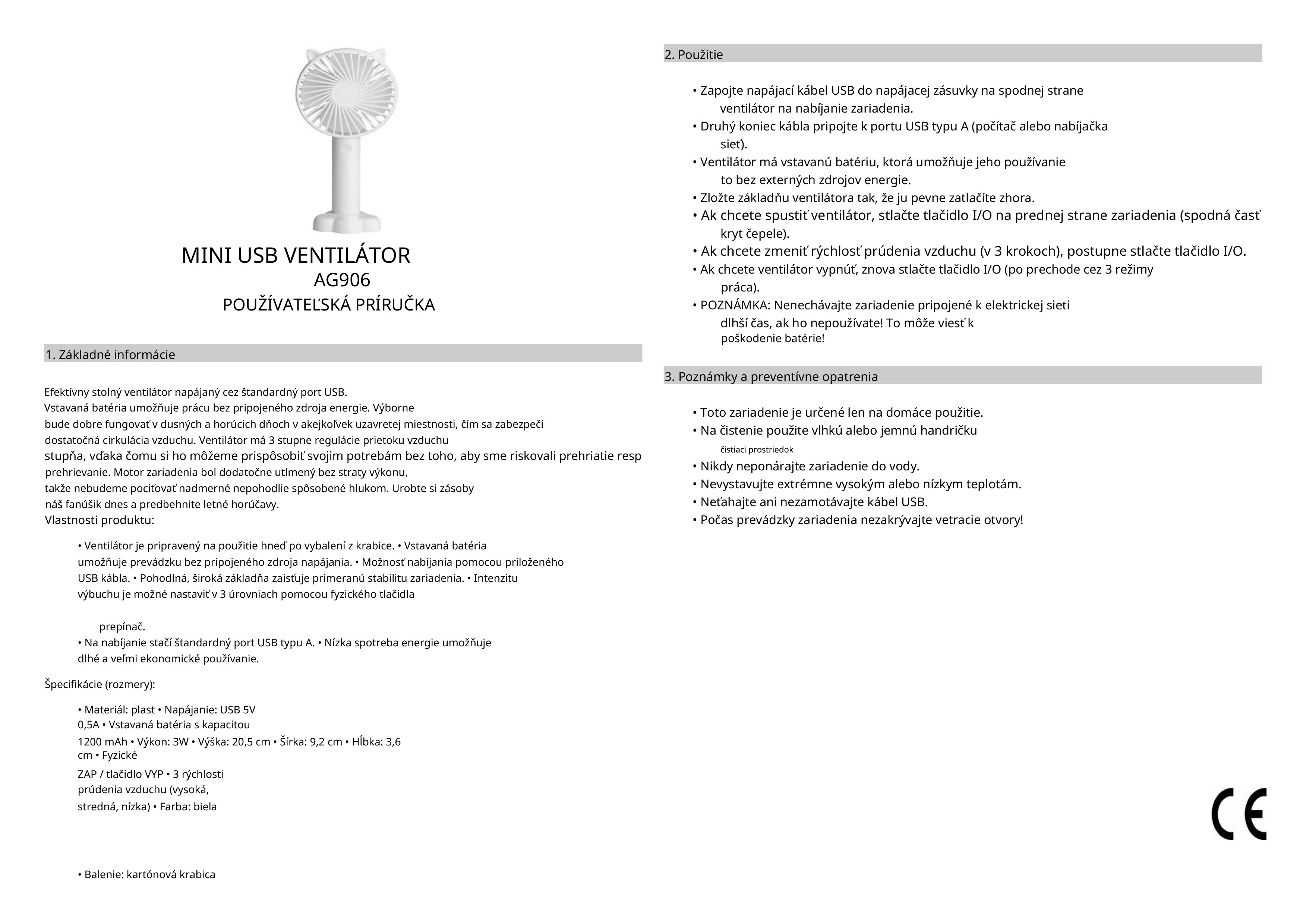 Ventilátor je pripravený na použitie hneď po vybalení z krabice.