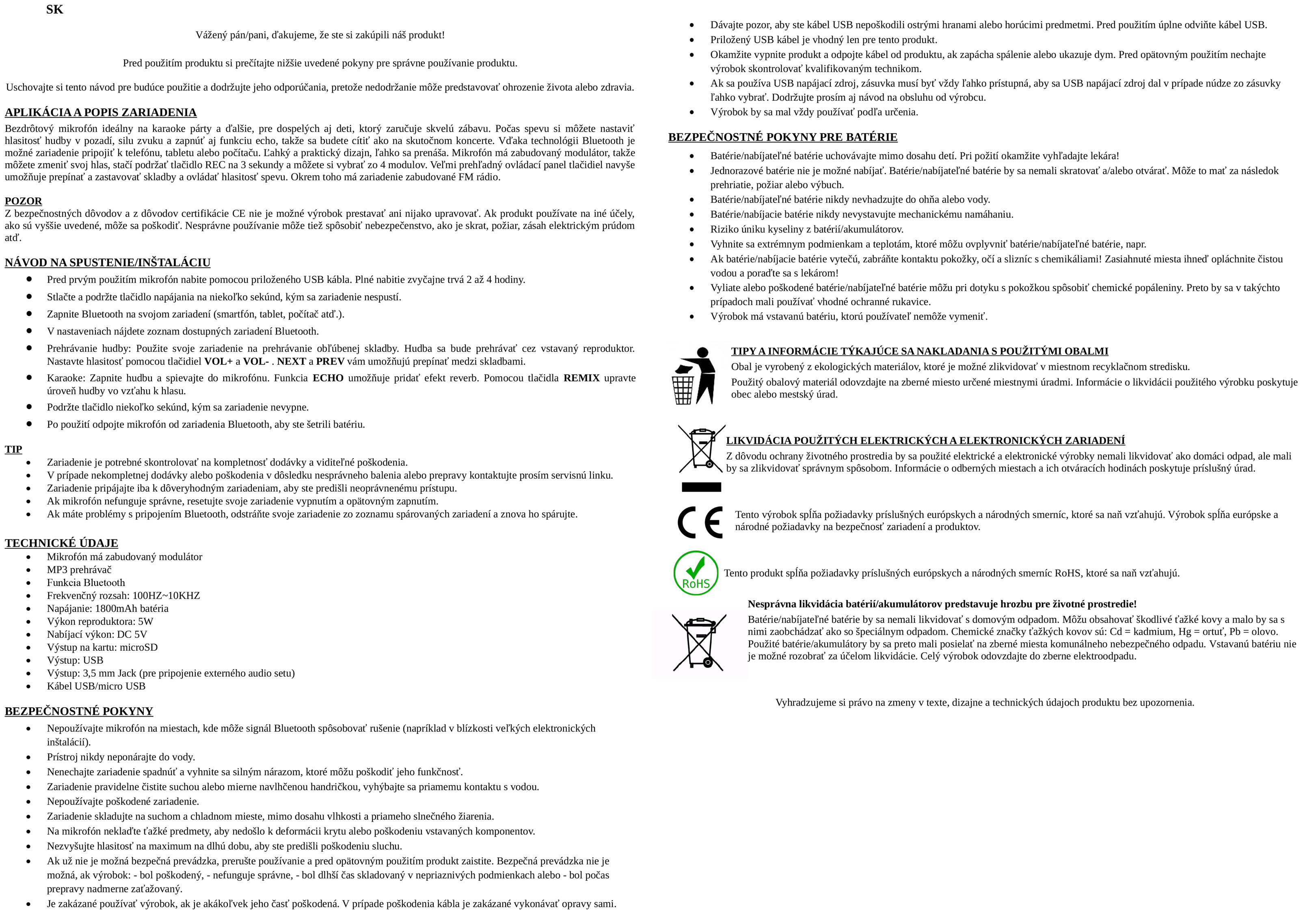 - 1x bezdrôtový mikrofón karaoke