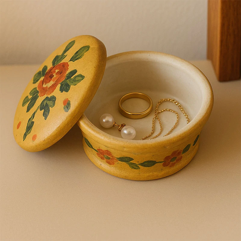 Keramická šperkovnica s ručne maľovaným motívom - 9 × 7,5 × 6 cm